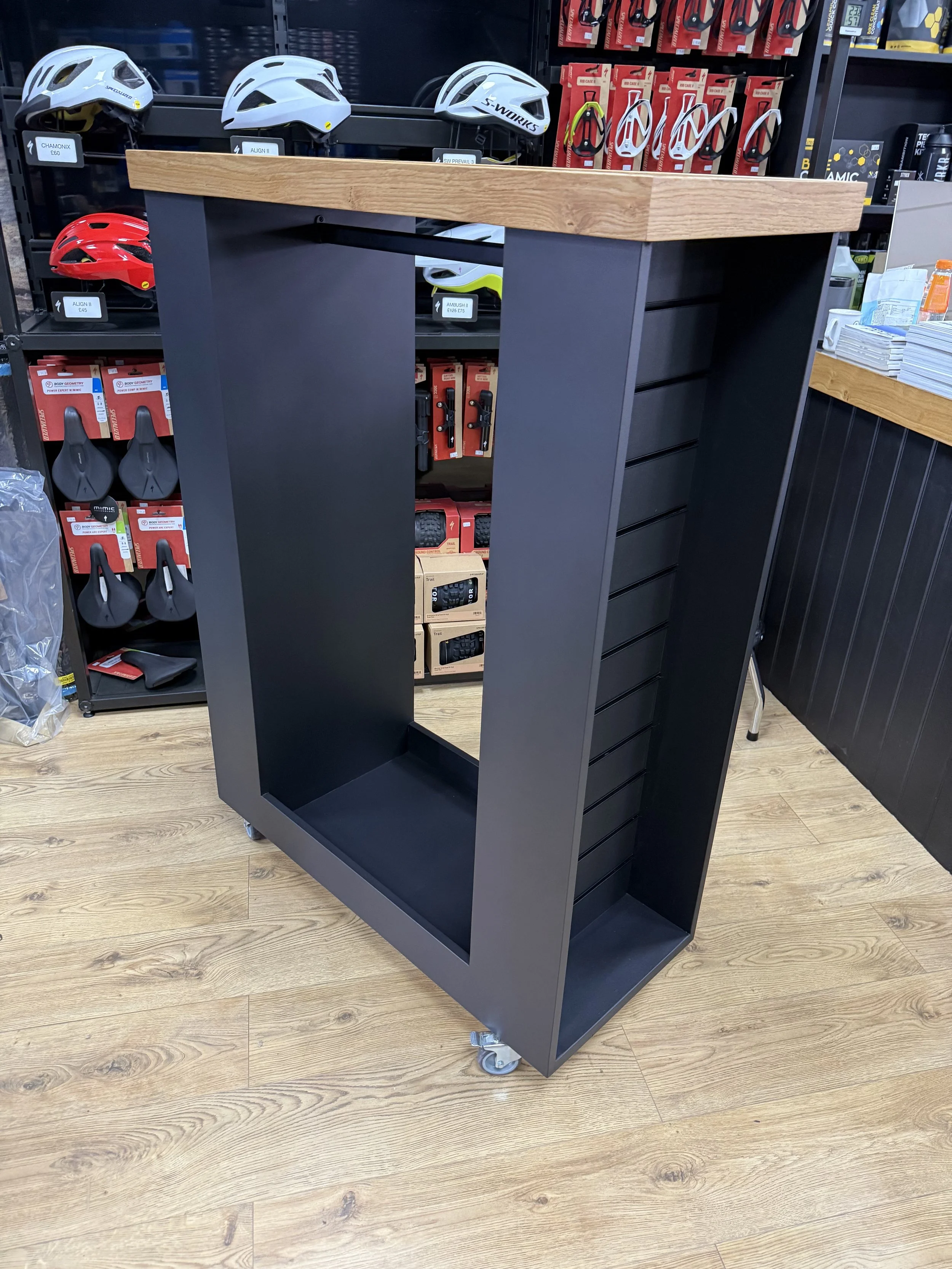 I provide a complete shopfitting service for small, independent businesses — from initial design and planning through to build, installation, and finishing. Whether you need a full interior fit-out or just a few freestanding display units or pieces of furniture, each element is handmade with the same care and attention to detail as all my bespoke joinery work.